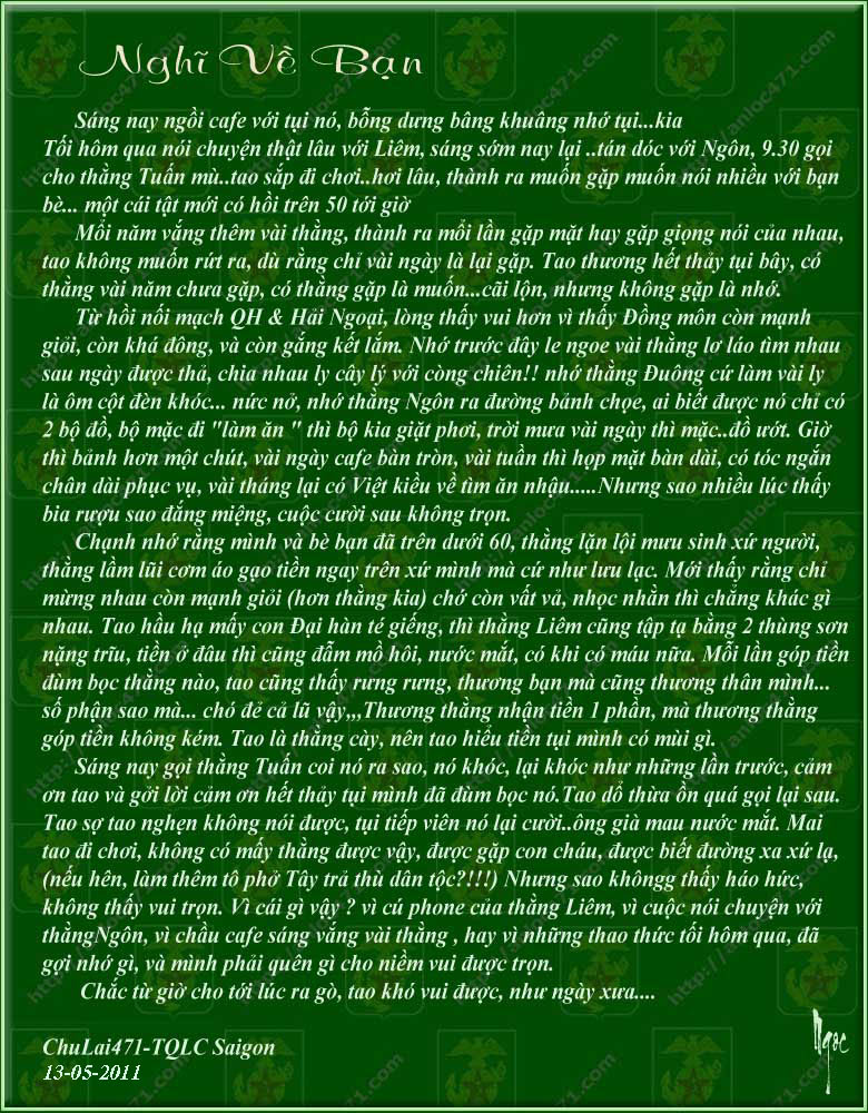 (cái này bữa nào gặp phải hỏi lại bả). Đă vậy mổi năm c̣n tổ chức Họp Mặt nữa.