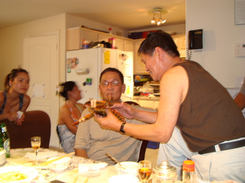 Này Hùng, "con tôm này đực hay cái ?" |