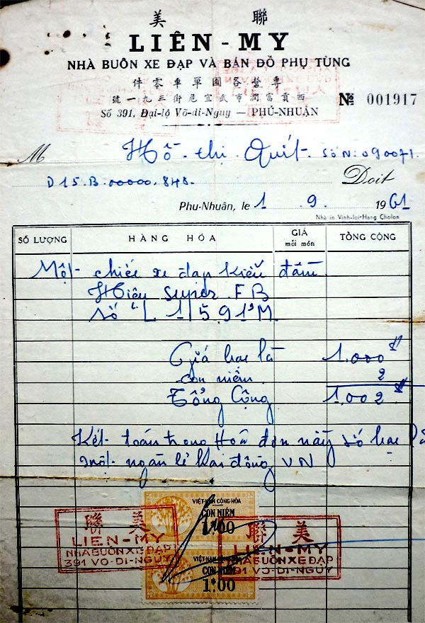 Hóa Đơn Xe Đạp